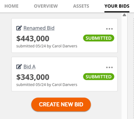 Vendors have the ability to personalize the names of their bids when submitting multiple bids. Simply click on the bid title next to the edit icon and input the desired custom bid name into the pop-up modal. Then, click "Save."